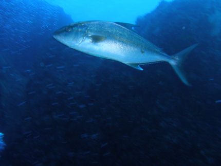 ヒレナガカンパチ ずっと後をつけてきてなにかいいたげでした。