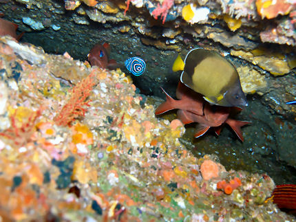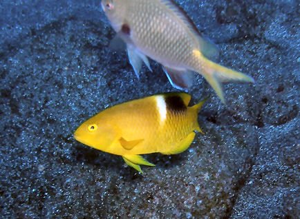タテジマキンチャクダイ幼魚 シラコダイが混じっているところが温帯ですね。