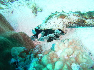 寝ぼけたコクテンフグにくっついていた。