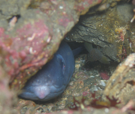 向かって右はベンケイハゼ。横から撮るととてもきれいなハゼなんですが....。左側はクロアナゴ。