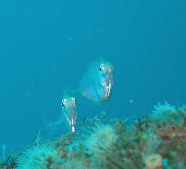 オオガラスハゼ 緑色がかっている個体。松根にいっぱいいます。