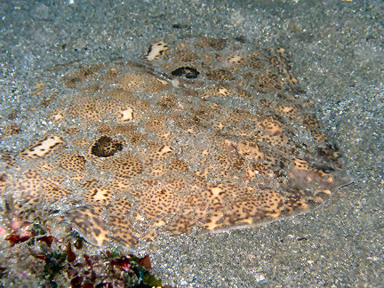 ツマリカスベ(と思います) 魚類データベースにもないようなので全体像をいれて撮っておけばよかったです。 右は眼です。真鍮の板みたいです。