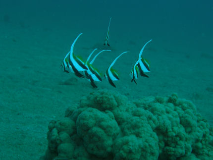 イソカサゴの喧嘩。もっと激しくやり合うかと期待したらパッと離れてしまいました。鰭の立て具合が「怒」という感じ。
