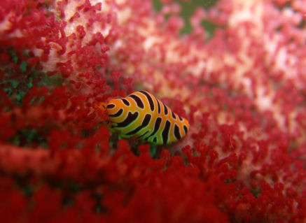 トラフケボリ 2匹のうち右はまだ小さい個体。もう一枚は赤いヤギに着いていて美しい。殻が欲しい。