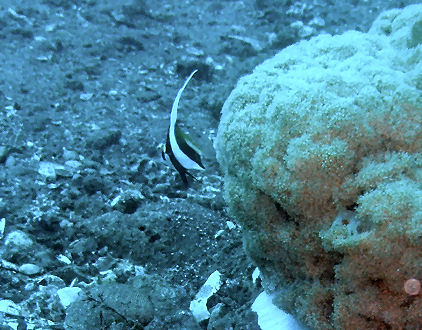 テングチョウチョウウオ幼魚 遠くではないがあまり人がいかない場所で撮ったので自分だけかと思いきやMarkさんも、「撮りました、ウミシダウバウオもいましたね」と。ウバウオがつくウミシダは怪しいと思いながらチラ見で素通りしてしまったので残念〜。
