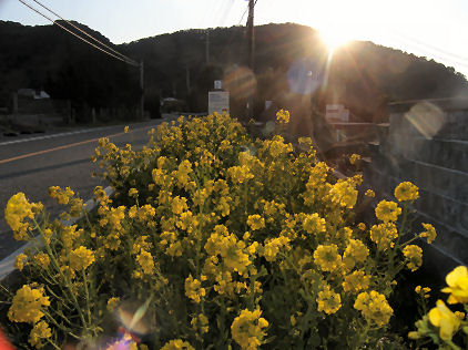 西日です。「菜の花畑〜入日薄れ〜♪」