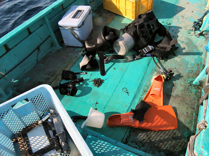 アクシデントの後です。心の乱れが散乱した器材に表れています。2月に「水中修行」するとは思わなかった......。