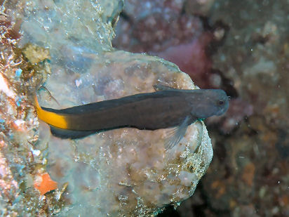 ニラミギンポ、全身が青黒い単色だったらこんなに注目されないと思うのですが黄色い尻尾に思わず毎回撮ってUPしてしまいます。