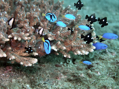 ナメラヤッコと一緒に(たまたま写っていただけ)いました。あまりに死滅回遊魚が多くてとても手が回りません。フタスジタマガシラもコガネスズメダイもごめんなさいとスルーしています。