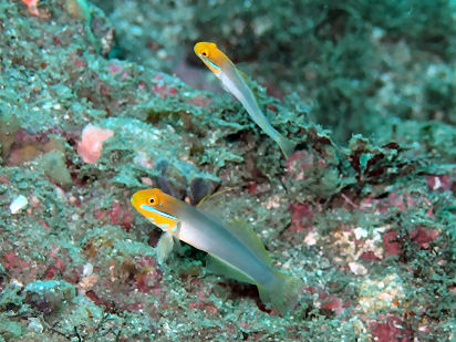 トリの魚の周りにはソメワケヤッコやマダラトラギスなんかで賑やかで、アカハチハゼも見つけました。スッスーと動いた先にはもっと小さいハゼもいてラッキー♪